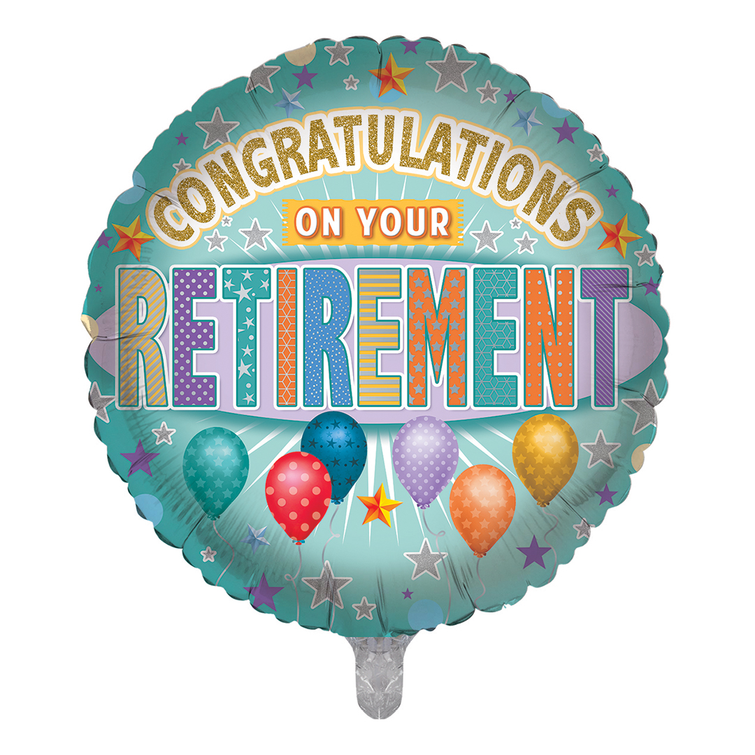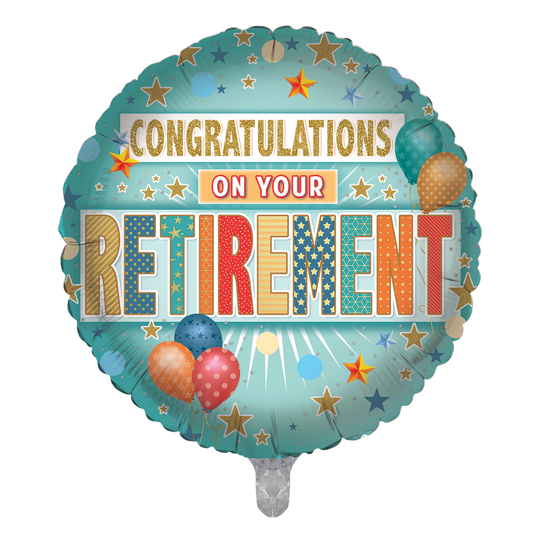 - Mark the joyous occasion of retirement with our Retirement Celebration Balloon This delightful balloon comes with a heartfelt congratulations message, making it the perfect addition to your retirement party decorations.