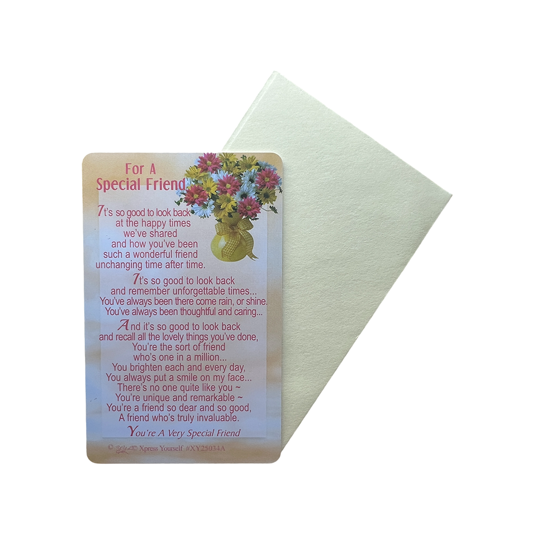 Plastic Keepsake Card "For A Special Friend" Theme Empty Template on the Back to Write "From" whom "To" who it is