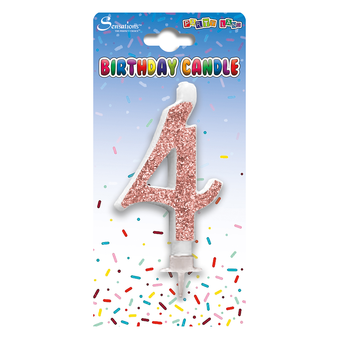 Rose Gold Glitter Numeral 4 Candle