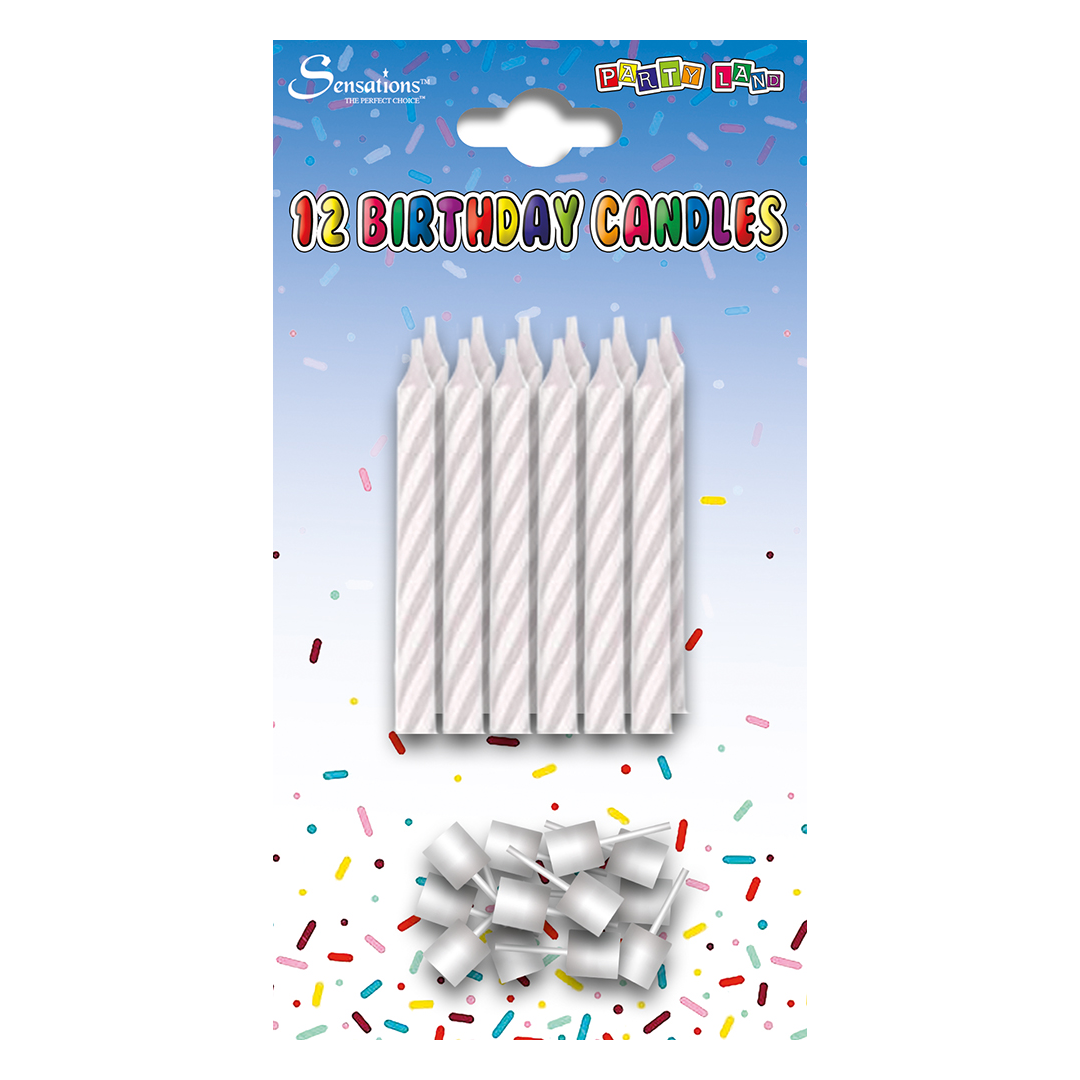 - 12 pcs white spiral candle with white glitter+12 white holders (Separate candles and holders)