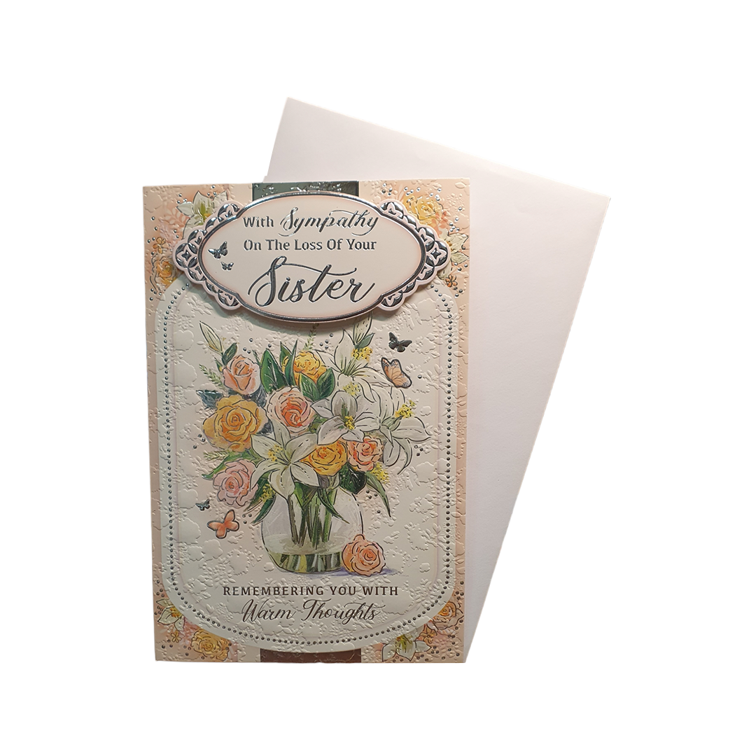 Celebrate special With Sympathy On The Loss Of Your Sister Greeting Card This delightful card is the perfect way to convey your heartfelt Sympathy wishes and make the recipient's day even more joyful. With its vibrant design and thoughtful message, this card adds an extra layer of happiness and thoughtfulness to your Sympathy greetings.